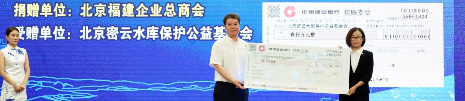 陳春玖會長應邀出席北京密云水庫保護公益基金會成立大會,鄭武執行會長支票